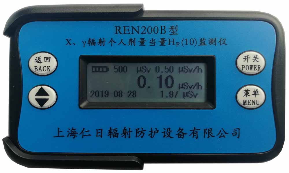 REN200B型X、γ輻射個人劑量當量HP(10)監測儀(簡稱:個人劑量報警儀)內置高量程蓋格計數管為探測器,主要用來監測各種放射性工作場所的X、γ以及硬β射線的輻射,具有較寬的測量范圍。能顯示工作場所的劑量當量率和累積劑量,更換電池時,日期及累積數據能永久保存。可選配RenRiPersonal個人劑量管理軟件,該軟件可存儲多個人的歷史數據,能記錄日累積、月累積、年累積、輻照時長、計算平均劑量率、扣除或不扣除本底輻射,且以文字和圖譜的方式展現數據。廣泛應用于核電站、加速器、鋼鐵、化工、同位素應用、工業X、γ無損探傷、放射醫療、鈷源治療、γ輻照、放射性實驗室、核設施周圍環境監測等領域中的工作人員進行個人安全防護監測及放射性提示。